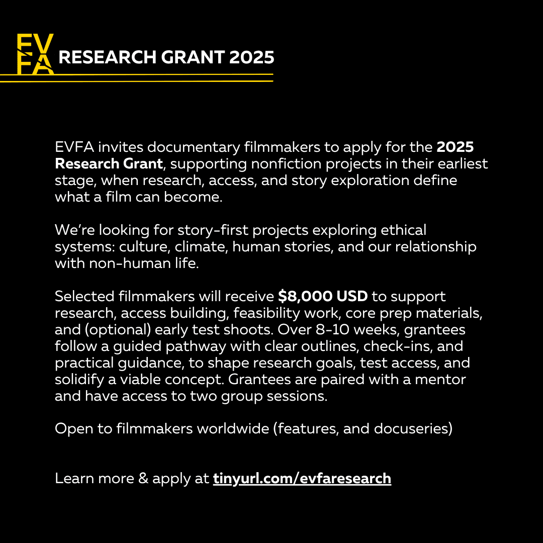 We’re thrilled to announce the launch of the EVFA Research Grant, which is a new initiative to help documentary films tackling topics of ethical consumption (food, animals, culture, and the environment) reach mainstream audiences - ensuring that if enough people see it, awareness turns into change.